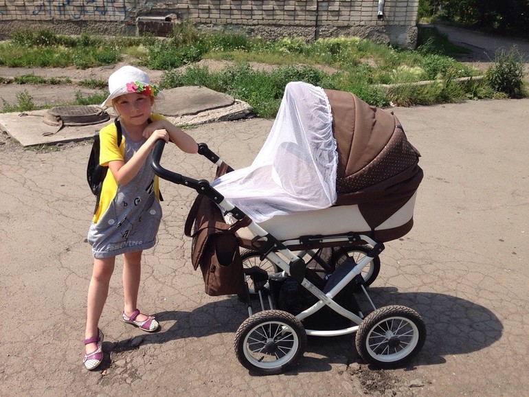 . На этой коляске хоть москитка сверху, а то ведь полностью закрытая коляска да ещё плотные шторы, "штоб не сглазили!" и "штоб сквозняка не было" и это при +30 в тени...