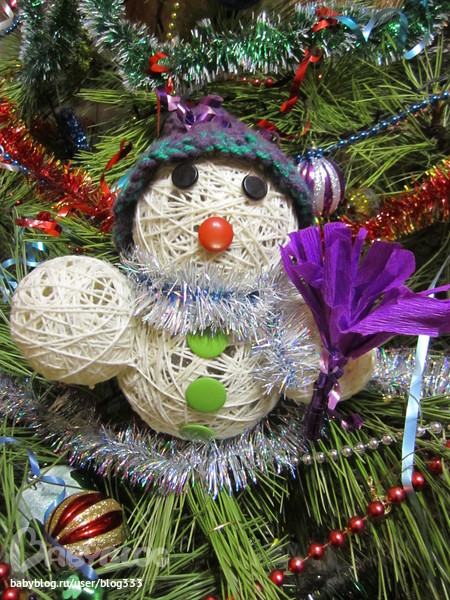 С сынулей слепили вот такого снеговичка из ниток)))Как вам?)))