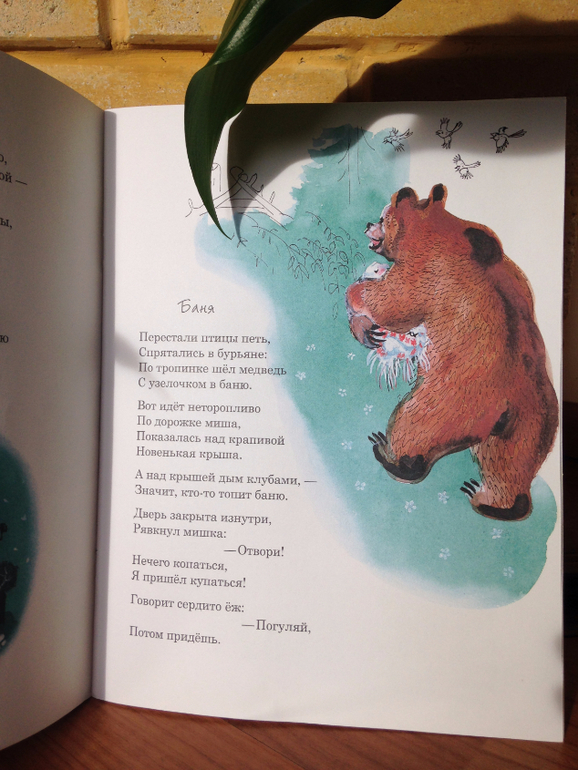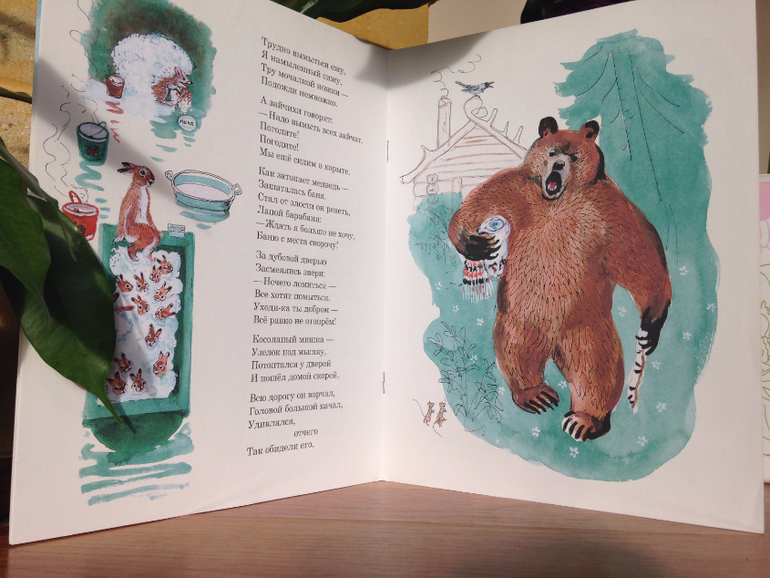 Мне нравится, что в стихах нет никакого скрытого смысла, все животные очень непосредственные и забавные, один медведь, ломившийся в баню, чего стоит ))) В то время, как ёж и зайчиха купаются и не пускают его в баню: