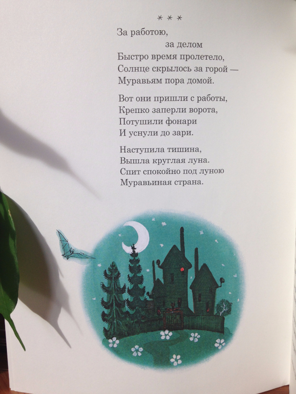 И вот вроде ничего особенного в книге нет, но какое-то тепло исходит от нее, очень уютная. Мне нравятся эти мурашки из «Муравьиной страны», такие трудяги, и так у них все гладко, ровно, слаженно. Книга нам так понравилась, что мы со стихотворением «Муравьиная страна» приняли участие в конкурсе Лабиринта «Дети читают стихи» ))) Вот ссылка на наше видео, можете посмотреть и послушать Наша "Муравьиная страна"