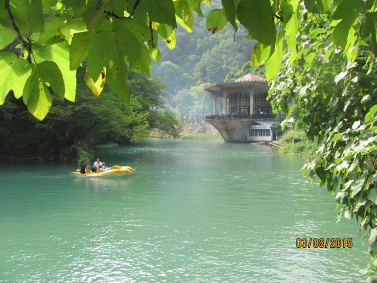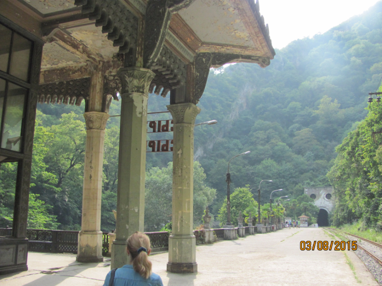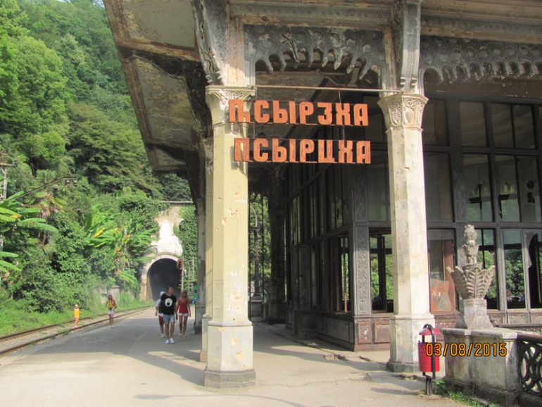 Следующим нашим пунктом были озеро Псырцха, железнодорожная платформа Псырцха и келья-грот апостола Симона Кананита, посещение которого обошлось нам в 300р. Кстати, билеты действительны и при посещение Анакопийской крепости.