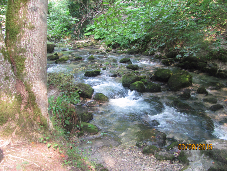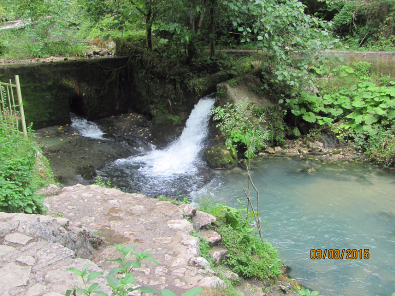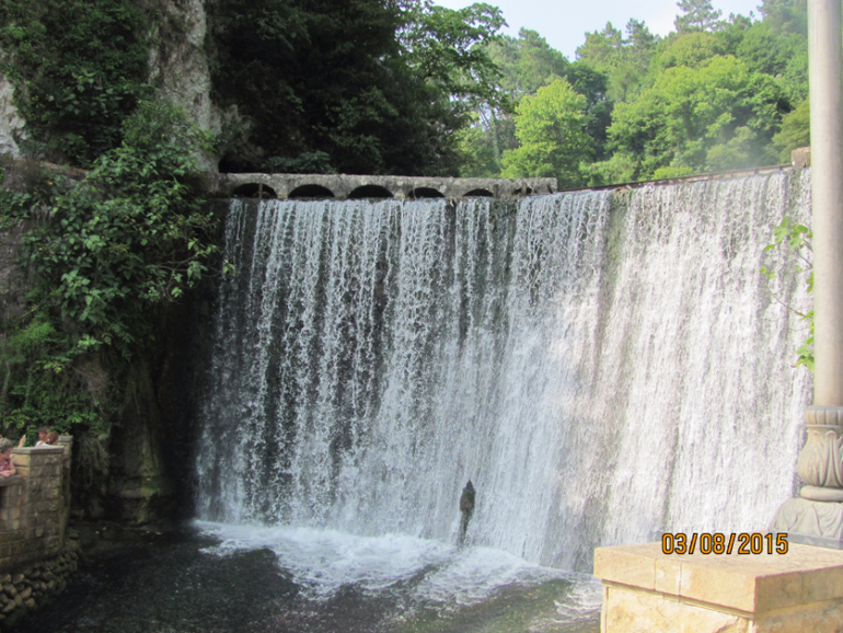 Далее мы пошли полюбоваться на Новоафонский водопад, который представляет собой сооруженную монахами в конце девятнадцатого столетия арочную плотину, имеющую длину двадцать один метр и высоту более чем восемь метров.
