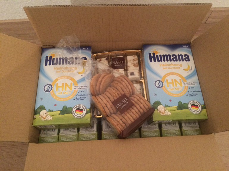 Ко мне обратилась мамочка для заказа молочной смеси Humana HN mit mct. Она же Хумана ЛП+СЦТ. Данная смесь исчезла из продажи в России. Но не было бы печали, если бы эта смесь не была ЛЕЧЕБНОЙ. У малыша в России осталось совсем мало запасов этого детского питания, поэтому я пообещала заказчице, что из-под земли достану эту Хуману. Говорят - поставщики перестали ее привозить... Но всё оказалось еще сложнее, чем я ожидала. Данную смесь Хумана HN+mct сняли с производства на заводе в Германии. Клянусь, я её искала ДВЕ НЕДЕЛИ! Отпускается она только в аптеках. Теперь похоже меня знают в лицо в каждой аптеке Бонна)) И вот, произошло чудо. Я нашла всего лишь 22 последние коробки этой смеси, которая мне уже снится по ночам)) на другом краю страны! Заказчица выкупила 10 штук. Три дня эта смесь еще ехала ко мне и наконец приехала. Я счастлива)) Теперь у ребенка есть еда! В буквальном смысле слова во всей Германии осталось еще 12 коробок этой смеси. Цена 10 коробок смеси вместе с доставкой 170 евро. Могу разбить на 2 заказа по 6 коробок. Оплата через Вестерн Юнион. Мамочке от себя положила вкусняшку)) Очень прошу репоста. Возможно смесь кто-то ищет. Её нет нигде!