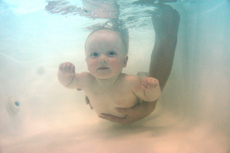 Из других умений: стоит сам с небольшой поддержкой, несмело переставляет ноги, если увидит что-то интересное, в бассейне подолгу плавает, держась за специальные колечки, ныряет просто идеально. Сам не садится и не встаёт, даже у опоры, словно бы не догадывается о такой возможности. Зато охотно садится, подтягиваясь за наши руки, но сидит неуверенно, постоянно падает. Смеётся от щекотки, от передразниваний и просто от всяких милых вещей. Общительный, постоянно совершенствует издаваемые звуки.
