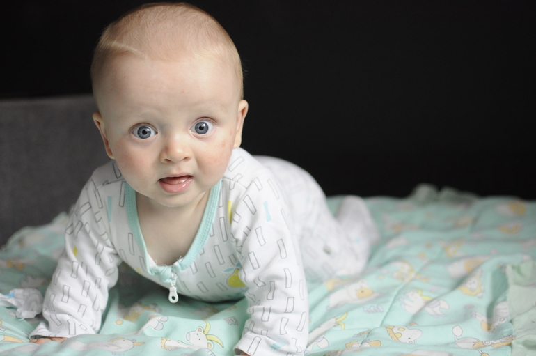 Спит чаще всего неплохо. Стали раньше укладывать на ночь - в 20:00, плюс-минус полчаса. После этого днём он стал спать дольше получаса (в основном час-полтора) минимум один-два раза, плюс короткие сны по 30-40 минут. Всего три дневных сна. Если не успевает поспать третий - просыпается, уложившись "на ночь" и капризничает, пытаясь снова уснуть. Ночью просыпается часто: раз в два-три часа, ест. Во время своего сна я забираю его из кровати после первого пробуждения, мне самой так стало нравиться гораздо больше. Благо мы очень удачно поменяли спальное место и теперь спим на раскладном диванчике, по бокам которого длинные подлокотники ровно такой длины, чтобы ребёнок не мог скатиться ночью.