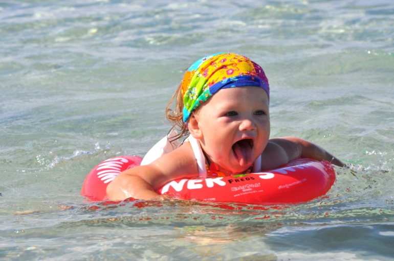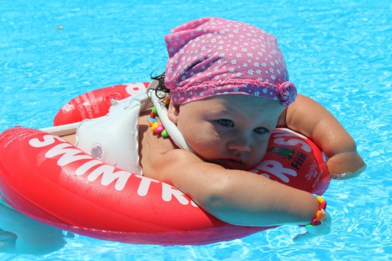 Спасибо за добрые слова)К кругу не привыкали толком, купили, одели и в воду. Мне кажется Полине моей все равно в чем, лишь бы в воду пустили)))