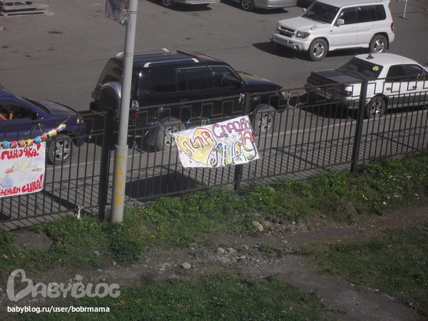 Это мой муж с нашими друзьями "прокрался" под окна роддома с целью сделать мне сюрприз. Вот он: