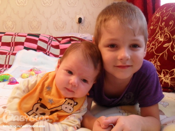 Тсссс... Скажу по секрету, на этом фото Лиде 1 месяц. И она просто начала падать на Серого. :) Но кадр получился удачный. :)))Люблю это фото, такое трогательное!