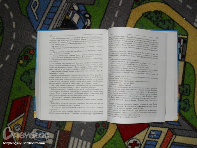 Я начинала читать ему вслух, но долго ждать от меня продолжения, а он хочет быстрее дочитать. Поэтому стал сам без меня над неё сидеть. Читает супер хорошо и быстро. И книга очень увлекательная. Картинки тоже есть.