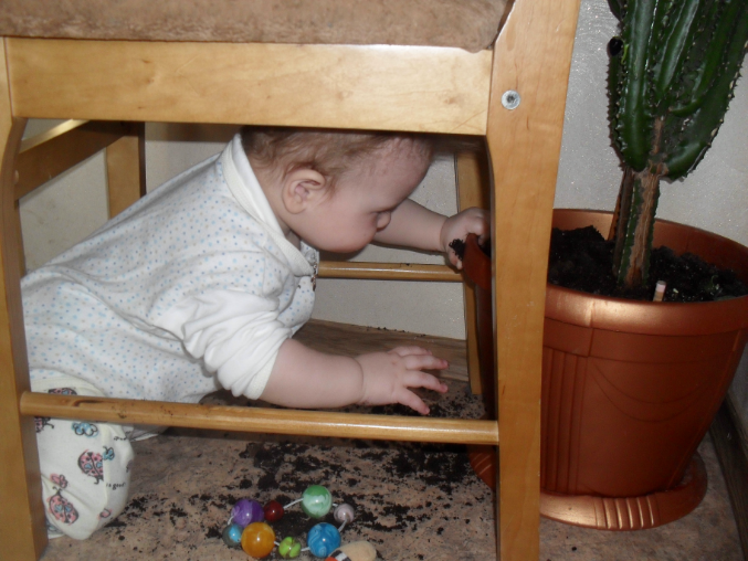 Ещё Лида очень мечтает поползать по коридору и всё там пососать. Но пока ей это не удаётся. Ползает бедная Лида под дверью, ждёт момента, когда мы потеряем бдительность. Теперь я боюсь, что Серёжа её ударит или прищимит дверью. А если дверь оставлять открытой, то она радостно ползёт туда с космической скоростью! Сегодня раз 15 развернула её на полпути. 14 раз она упорно разворачивалась туда, а на 15й каааак разрыдается!