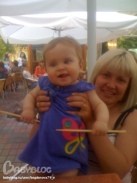 Начали чистить зубки, целых два уже вылезли наполовину))) Лере понравилась процедура, она потом еще долго жевала свою зубную щеточку. Еще бабушка внучке подарила серебряную ложечку и теперь Лера ей кушает. Ползает доча по всей квартире, быстрее всего ползет к игрушкам собачьим и к обуви в прихожей, проводам если не убрать... Смеется, прямо ухахатывается над собакой и пытается отнять у него резиновую кость. А вообще главная и первоочередная задача вставать везде! Встает в своей кроватке, у спинок нашей кровати, у диванов, кресел, стульев (не получается, но все ровно пытается), у колонок, у стен и т.д.))) В своей кроватке учится ходить по периметру, получается, но пока не уверено, еще учимся ходить за ручки. Теперь я очень часто слышу "мамамамамама", очень горжусь))) Вроде налаживается дневной сон, сегодня спала 2 раза, аж по 2 часа, первый дома, второй на улице. У меня теперь получается спокойно приготовить ужин, пока ребенок ползает на кухне и играет посудой)))