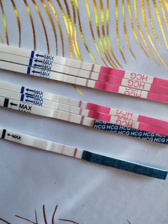 У меня при хгч за 100 тысяч был как у вас первый, я тоже ради эксперимента сделала, думала он чуть ли не чёрный будет, а нифига. Так что вообще не стоит внимания обращать на яркость. Тесты нужно только для определения факта беременности, больше ни о чем судить нельзя.