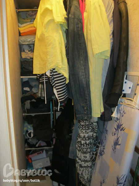 Ниже бука, кладовка превращенная в гардеробную. Серьезной мебели пока не имеем, спасаемся гардеробной, но она становится нам мала.
