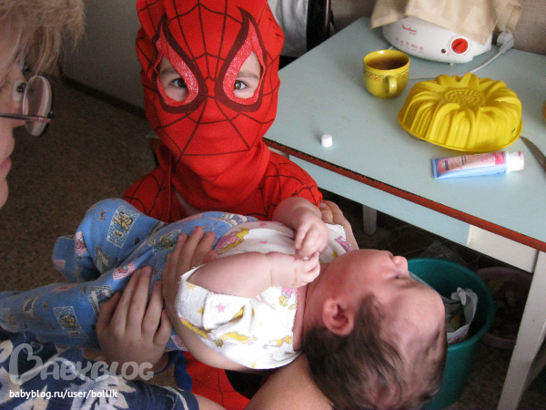 На фото племяш маленькую Маньку держит, тоже помогает в силу своих возможностей
