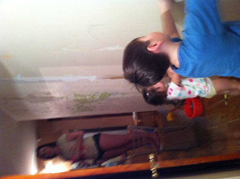 Вчера мерили обувь, на предмет носим или отдаем. Мария нашла кем-то отданные нам балетки и заявила что она Золушка. Эта сказка у нас в почете. Далее, скрылась в недрах углового шкафа и появилась в подъюбнике от платья, именно так по ее мнению и одевалась Золушка. Грустным голосом спросила - где мой жених? Все из того же шкафа была извлечена для меня кепи. После примерки и главный худрук одобрил меня на роль жениха для Золушки. Мы танцевали под мое ла-ла-ла. Мария кружилась и падала спиной назад типа танго. Я ловила как могла эти 19 кг. ставила на ноги, кружила ее, кружилась сама напевая при этом ла-ла-ла.