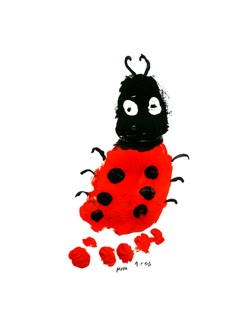 Идея не моя, но вариации могут быть разными. Мы например рисовали цветы из ладошек и божью коровку. Соместное творчество + на память)