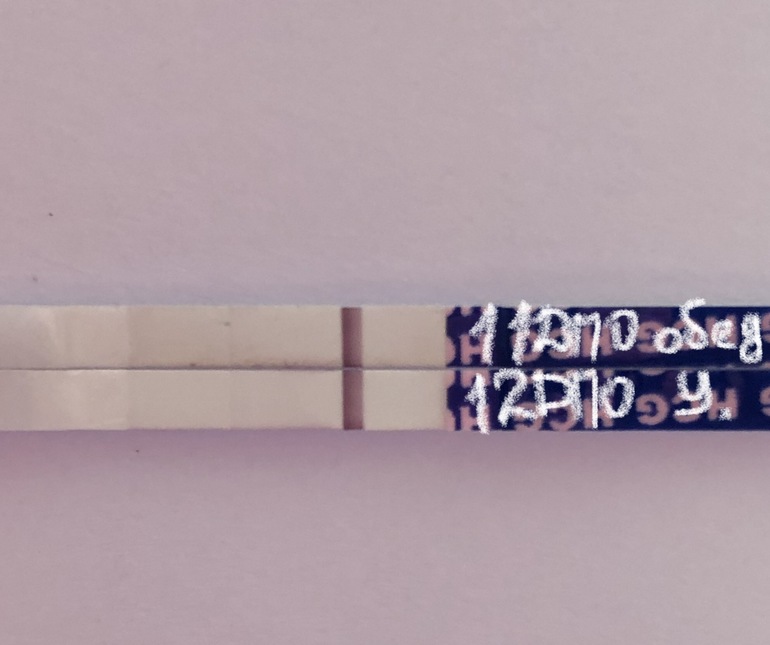 Вчера вечером на 10дпо(уже отчаялась и мочила тест просто так) сделала и бросила, утром увидела какую-то тень, сделала сегодня утром на 11 дпо ещё один и снова полоска, сделала один тест в простой воде, он пустой совсем, но те полоски явные реагенты. Больше эти тесты заказывать не буду, никогда не было реагентов, только на эвитестах места под полоску серые и будьте уверены и леди тест явно серые и внутри пустые, их не считаю даже за реагенты. А эти one step разочаровали, в прошлом цикле и в этом до 10дпо вечера были абсолютно пустые. После утреннего сегодня через пару часов сделала ещё один и намного светлее, но что-то проглядывается - на фото почти не видно. Это доказывает реагентность и пролёт. Правильно пишут многие - раньше 12 дпо лучше не делать и не выискивать, а у меня руки зачесались, хоть и обещала себе. Ещё проснулась и офигела - все лицо в красных прыщах 😩 за ночь, такого не было ещё в моей жизни, предполагаю это аллергия на репеллент, которым вчера жирно набрызгала руки и забыла на ночь смыть, так как избегаю подобным пользоваться и в голове не было перед сном, что нафигачилась этой химией... лицо ужасает, тесты не огорчили, но заинтриговали на добрых три часа разглядываний, фотографирования 🤪