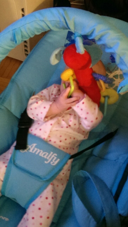 Из умелок, нам недавно подарили игрушек всяких, три из них вешаю над шезлонгом, очень они ее радуют, сидит теребит их, смотрит удивленно) при кормлении стала активно трогать грудь) активно сосем кулачки)