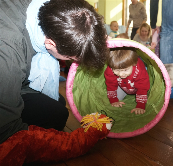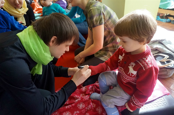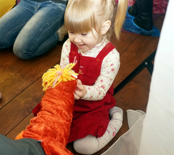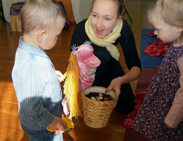В этот четверг я решилась и взяла Льва на наш спектакль во "Вместе с мамой". Он его не видел и вообще тыщщу лет нигде не был. Хоть он и подуставший был, действо его захватило и он все время активно участвовал. К счастью, наши спектакли как раз рассчитаны по времени на то, чтобы малыши не успели устать, зато смогли проникнуться сюжетом, тем более, и интерактив на это рассчитан).