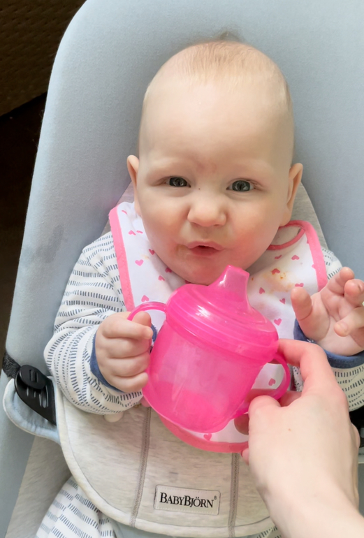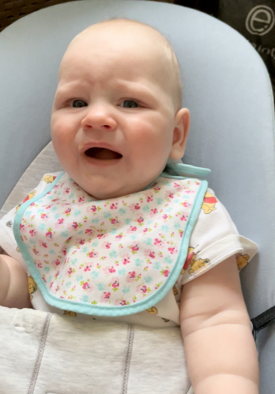 Он заплакал, Второй день вообще поперхнулся. Я думала что все завалила я! Но потом все пошло как по маслу. Сейчас ему все интересно пробовать. Только от воды кривится.