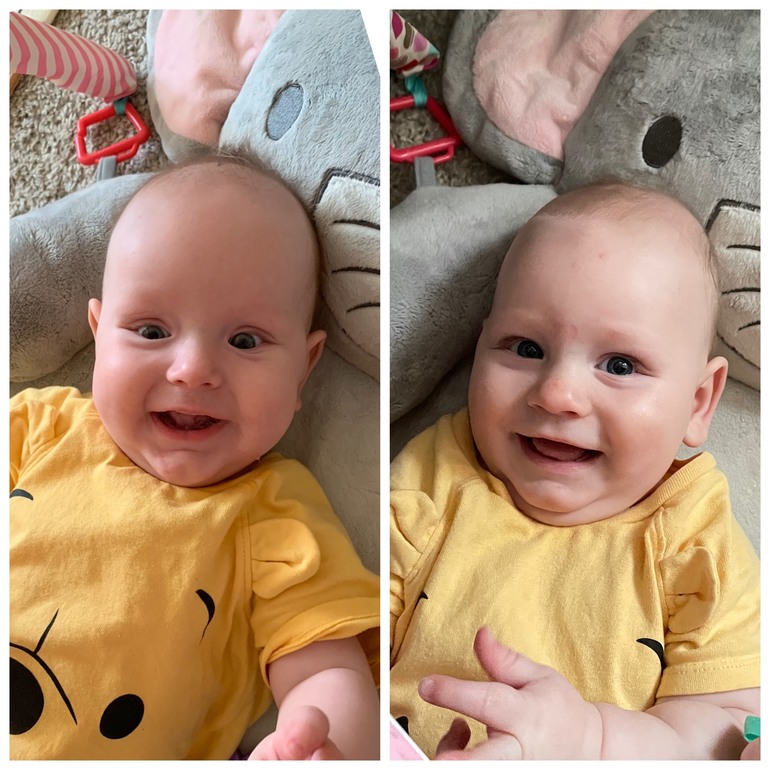 И теперь мой любимый вид сравнивания детей😂 Коллаж 5 мес Ксюша и 5мес Миша.