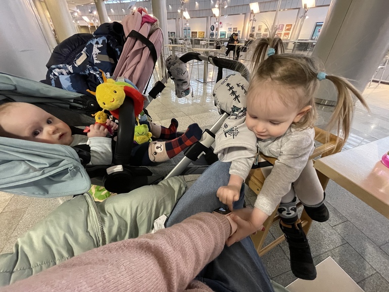 Примерно раз в неделю утром муж идет на работу попозже и сидит с Ксюшей. Мы с Мишей идем вдвоем за продуктами. Когда Ми подрастёт, то буду чередовать детей😂
