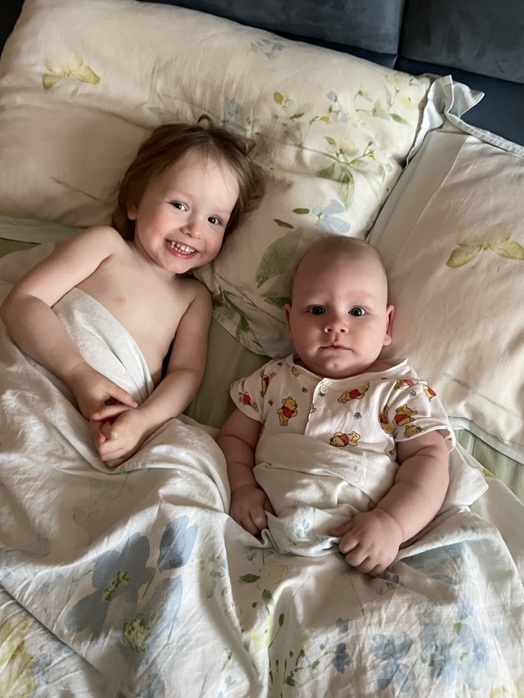 В основном ходим все вместе куда то. Малявки стали дружить) Всегда друг другу радуются после сна.