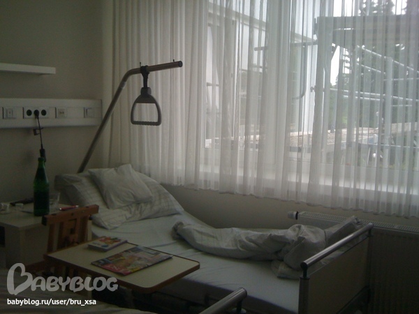 моя палата была двухместная, с телевизором (2 шт), мы там ещё с мужем успели ЧЕ по футболу посмотреть) Кровати очень удобные с пультом управления, рядом тумбочка с раскладывающимся столиком куда приносят еду. У каждого ещё есть свой шкафчик. В каждой палате туалет и душ. Везде есть кнопки вызова сестёр.