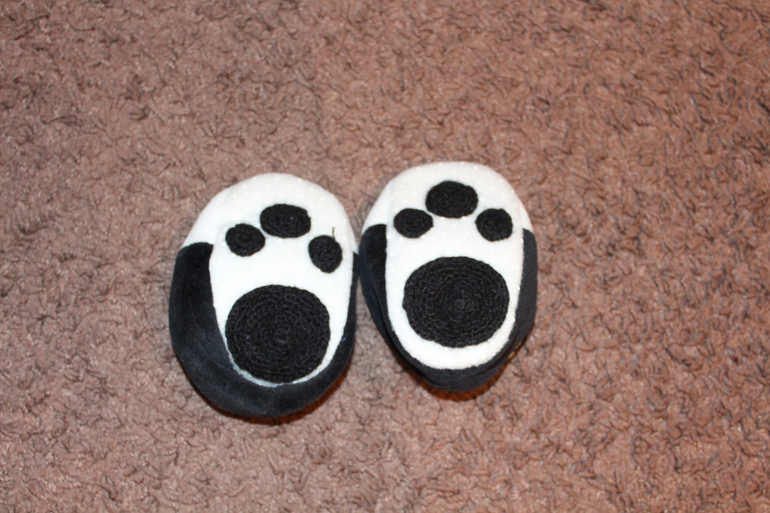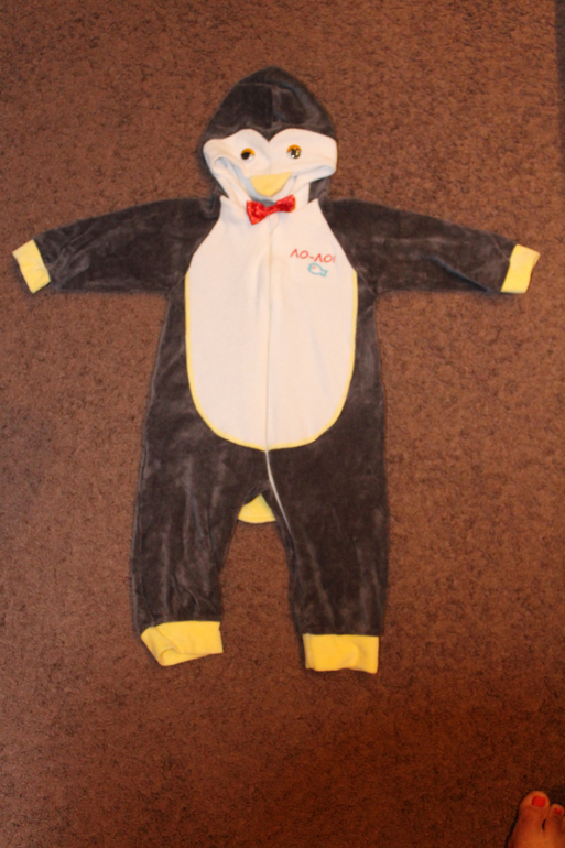 В подарок отдам к ним пинетки. Костюм пингвина к нему пинетки желтые, сами вязали. Костюм панды к нему пинетки покупные с мордочкой панды, а на ступню пришивали вязанные круглешки, чтоб было похоже на лапку медведя.