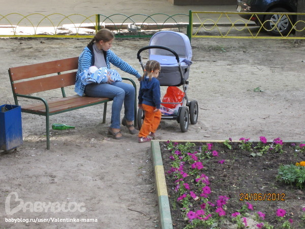 Вот мы буквально недавно:)) гуляем на детской площадке... к слову, площадка открытая, около дороги, где ездят машины и ходят люди туда сюда.