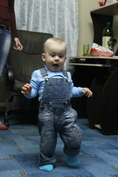 Сегодня мы впервые сделали 5 шажочков)) Ура!!! Скоро будем бегать от мамы))) Растет наш мальчик!