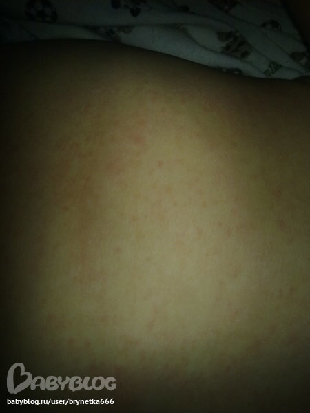 если по всему телу мелкие красные невыпирающие точки, то возможно контактный дерматит (проверьте порошки, шампуни и т.д.)