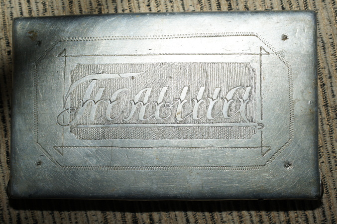 Это портсигар, который мой дедушка Бирюшов Иван Алексеевич, разведчик, сделал моей бабушке Кормиловой Клавдии Матвеевне, командиру танкового экипажа, на войне. Они были молоды. Бабушке - 17, соврала о возрасте, чтобы пойти на войну. Деду -18. Они воюют в разных отрядах. Но судьба их знакомит. Влюбляются. Конечно, любимую хочется радовать. Дед дарит ей свой портсигар, который сделал из крыла сбитого немецкого самолета. Немного исправляет портсигар и дарит.