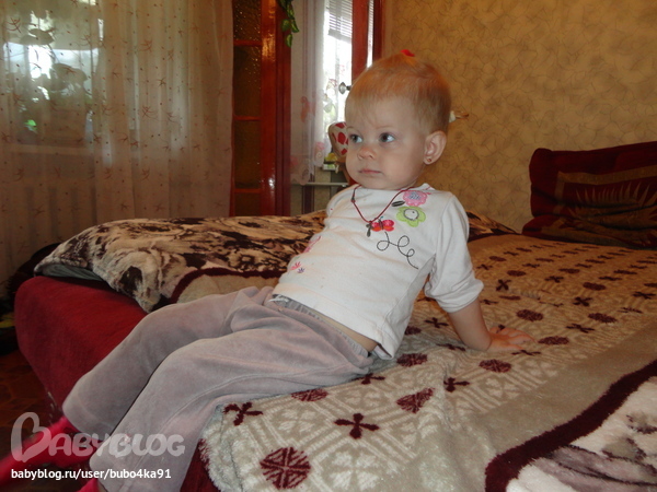 Теперь Настя залазит на диван и садиться на краю взвесив ноги вниз и смотрит мультики-как взрослая)
