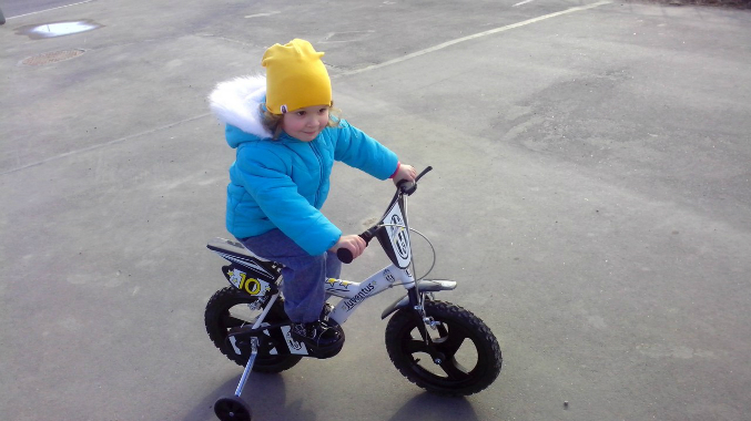 Наш Велосипед Juventus бесопасен на столько, насколько вообще можно сделать безопасным велосипед. Даже при развороте с максимальным поворотом руля велосипед не делает и намека на "заваливание", он устойчив, педали крутятся, как по маслу, Ксюня на нем рассекает с огромным удовольствием. Ну и ручной тормоз - это оказалось даже преимуществом, так как педали могут прокручиваться назад, а значит ребенок может их прокрутить ровно до того момента, когда ему удобно будет толкаться, чтобы тронуться вперед.