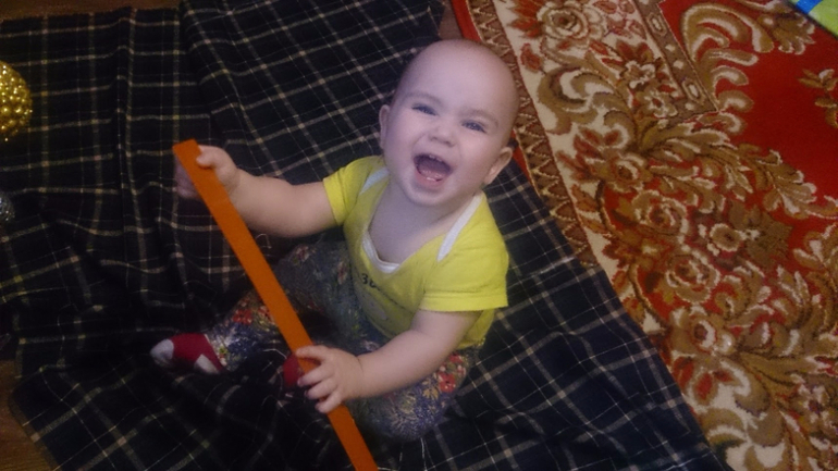 Из нового: издает звуки, прикрывая ладошкой рот, получается что-то вроде "ва-ва-ва", находит у ляли носик, ротик, глазки и ушки, знает , где ручки и ножки.
