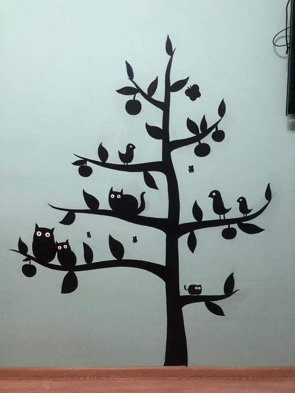 Всем добрый вечер! Захотелось немного хвастнуть) Ну и вдруг кому пригодится идея ☺️После ремонта в детской остался подтек краски на обоях. В глаза не бросался конечно, но все же хотелось как-то это исправить. Плюсом не так давно один из мелких покоцал стену аж до штукатурки 🤦🏽♀️
