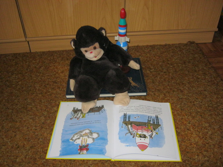 смотрели мультики про полет в космос Смешариков и мой любимый Достать до неба (после нескольких просмотров отлично усваивают обратный счет от 10)