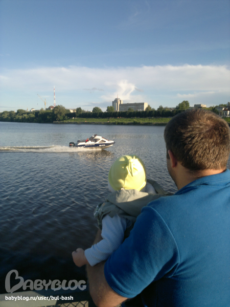 Вечером с папой погуляли на Волге, посмотрели на волны и кораблики.