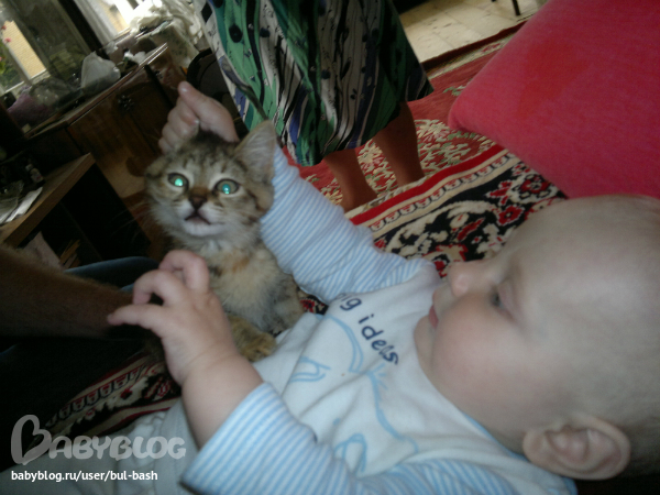 Сегодня праздник, правда отмечали вчера, все вместе в деревне...подарили Мише туда котенка Василиску, которую он затрепал за уши и намучил....
