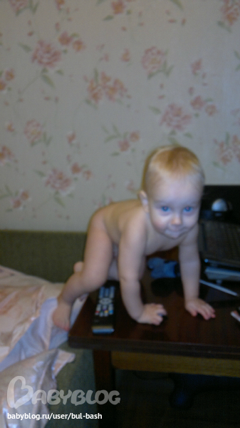 Мы досих пор не ходим сами, а ходим за руку только и по стенам..может пару шажков, но это ему особо удовольствия не доставляет...