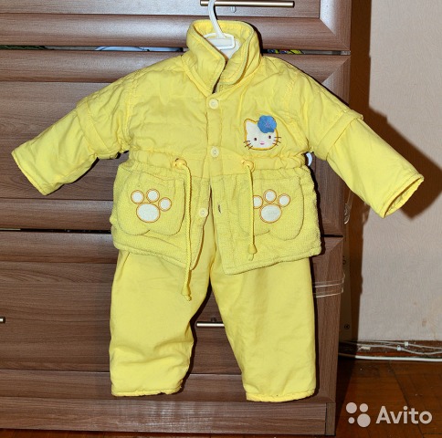 Куртка на пуговицах, пояс на веревочке можно затянуть. Штаны на резинке.