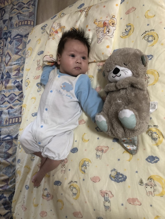 Лениво проворачивается на бочок. Пару раз перевернулся со спины на живот , но это скорее случайность. На живот переворачивается пока , если держу за ножки. Единственное, что голову держит не особо хорошо.когда лежит на животе, поднимает высоко , но она ещё немного шатается. В Японии норма держания головы до 4 месяцев( уже узнавала). Я также считаю, что каждый малыш имеет право развиваться в своём собственном темпе, поэтому не переживаю, но продолжаю работать над этой проблемой( массаж , зарядка и так далее)
