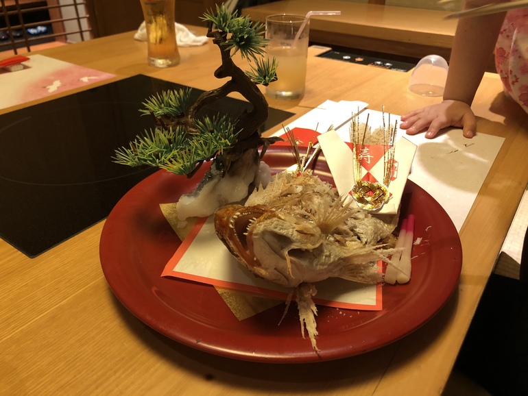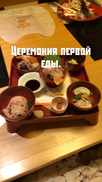08.08.2020 нашему крошке-дракошке исполнилось 100 дней и мы провели для него Окуидзоме( церемонию первой еды) .детских праздников в Японии не много -это церемония ( когда на 8 день отец демонстрирует родственникам имени малыша , написанное красивыми иероглифами), омиямайри( первое посещение синтаиского храма и представление малыша божествам -покровителям) и окуидзоме( церемония первого кормления.)Вот так выглядит детская еда, которой кормят малыша( красиво сфотографировать я не успела, так как муж был очень голодный, так что после окончания ритуального кормления съел все до того , кк я успела все красиво сфотографировать и ну и дочь тоже накинулась на рыбу)