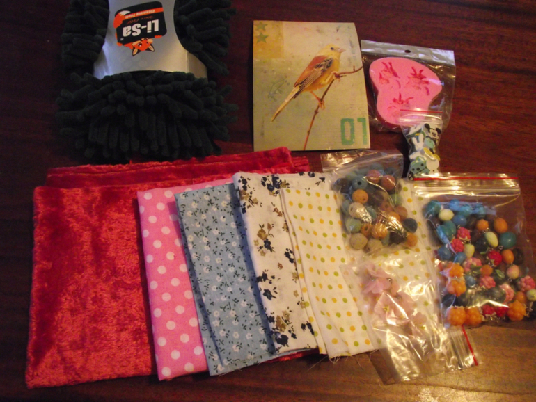 ну а это сокровища , которые лежали в комодике...плюшик, тканьки, пуговички и прикольные бусиночки, которые я выморщила... молдик силиконовый ещё)