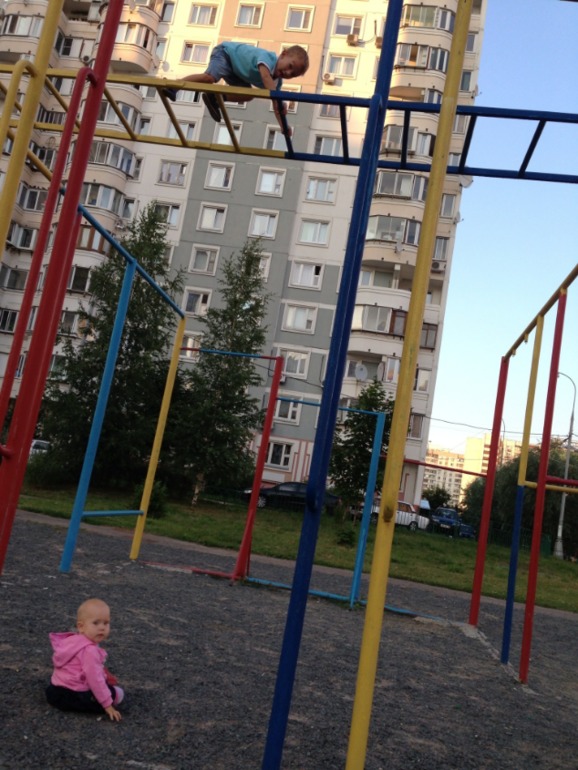Сегодня начала ползать и катать Олежкину машинку. А еще впервые подползла ко мне, нашла мою руку и взяла ее, чтоб вместе встать и идти. Она хоть и делает самостоятельные шаги, видно считает, что надежнее с опорой ходить пока:)
