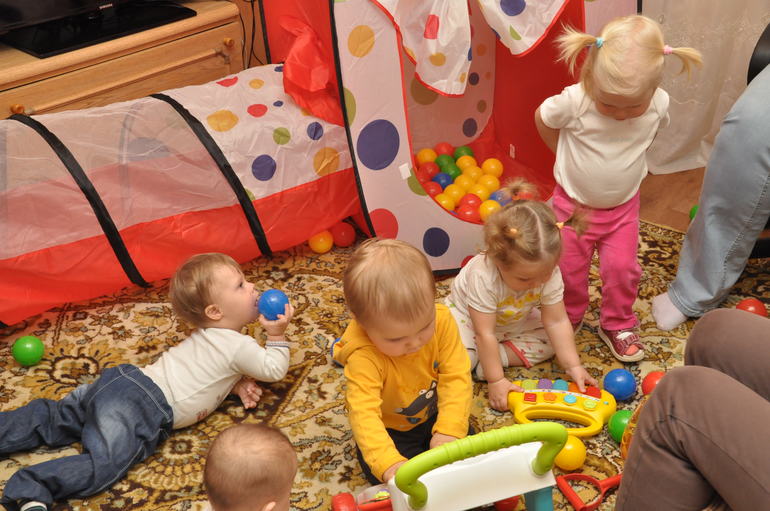 Утром в субботу у Нюсечки в гостях были ее друзья детки с мамами. Сразу оговорюсь, что живем мы в однушке, весьма тесно, так что пришлось заранее устанавливать формат праздника "без пап". Итак, утром 22.11 у нас на 32 м2 был детский сад! Пришло 5 деток от 8,5 мес до 1,6 лет: