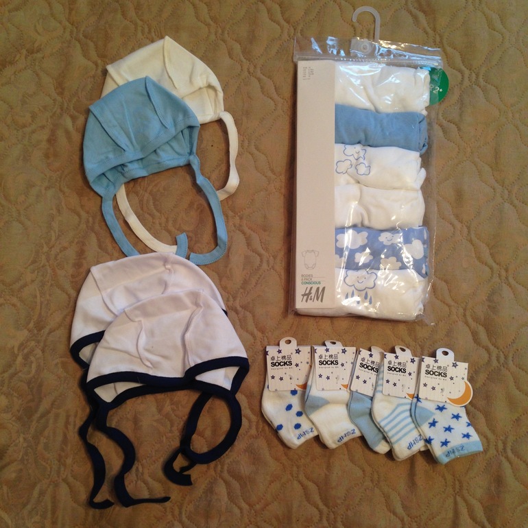 Покупать ничего пока больше не будем, а хочется же) вот носочки и чепчики были последними в списке недостающего на первое время. Ну а боди из h&m случайно под руку попались со скидкой))))