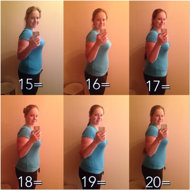 Неделе на 17 наконец-то стало отступать вздутие. А я уж думала, что все же живот растёт у меня-даже фотографировать начала))) Все как и в первую Б: таз большой, Ляле там просторно, вот и не заметно почти пока. Правда в этот раз мы по задней стенке, а не по передней плюс изначально от Нюси осталась подушечка на животе)