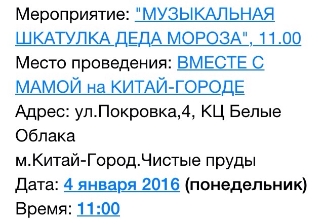На завтра билеты на елку "Вместе с мамой". Билет на маму и ребенка 2500 р (подарок включен-НЕ конфеты)